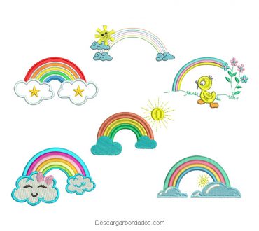 Diseño bordado de Arcoíris con nube infantil para bordar