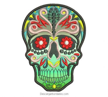 Bordado de calavera catrina mexicana con aplicación